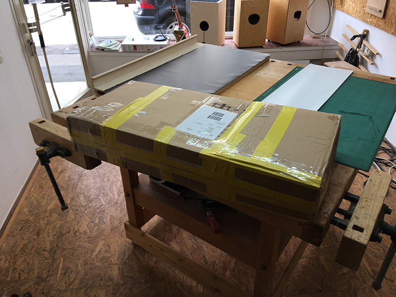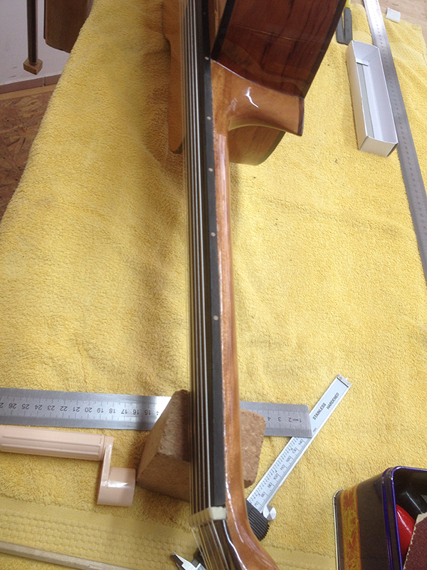 Cavaquinho bauen, Boden (Nussbaum) gefügt Cajon, Snare-Einstellung Ukulele bauen, Halsfuß schnitzen